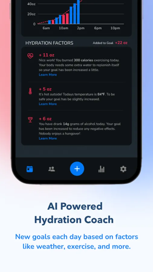 Receive new personalized goals each day and see what factors are affecting your hydration.