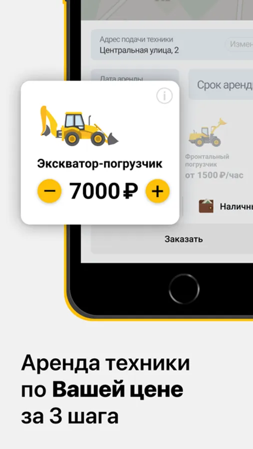 Цена формируется при оформлении заказа, вы видите её сразу. На нее влияют: место аренды, срок, тип техники и несколько других деталей. На данный момент в приложении доступна для заказа следующая техника: