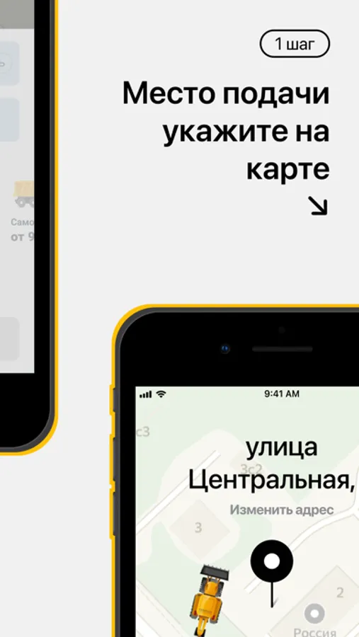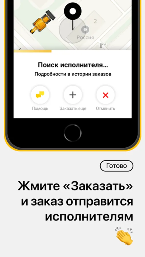 – Откройте приложение и укажите адрес (местоположение определяется с высочайшей точностью, вам не нужно будет объяснять куда подать технику);