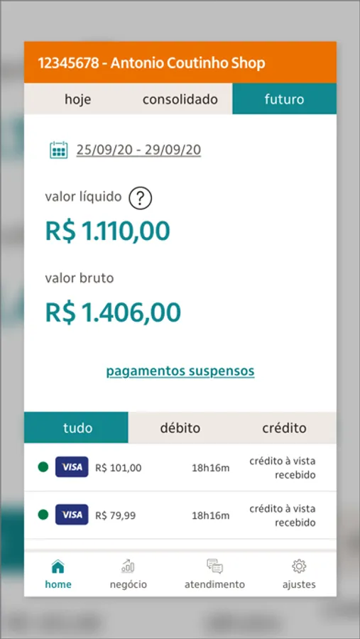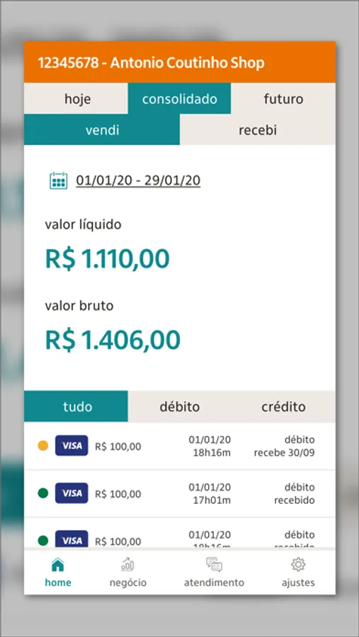 Com nosso app, você gerencia suas vendas, seleciona o período que quer consultar e ainda pode escolher visualizá-las só no débito, só no crédito ou nos dois juntos. Legal, né?