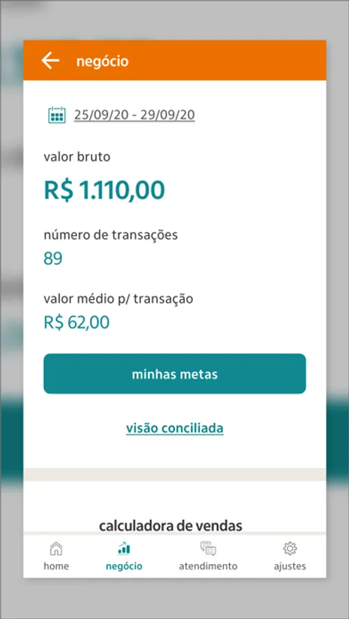 Quer ter uma visão geral do seu negócio? Você pode ver o seu faturamento, o número de transações e o valor médio por venda.