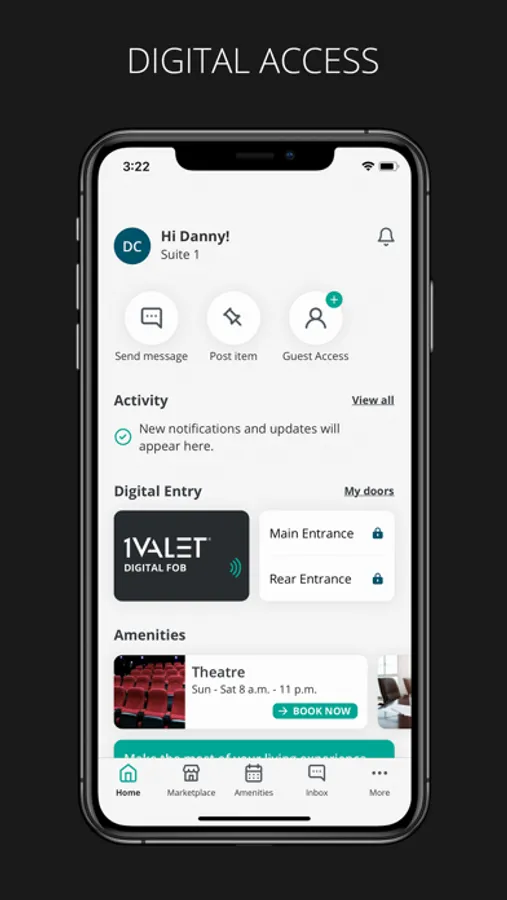 Unlock the potential of your smart building with the 1VALET app. Designed to make building access safer and simpler for you and your guests. Unlock doors, find services, book amenities and more - your building is in your hands.