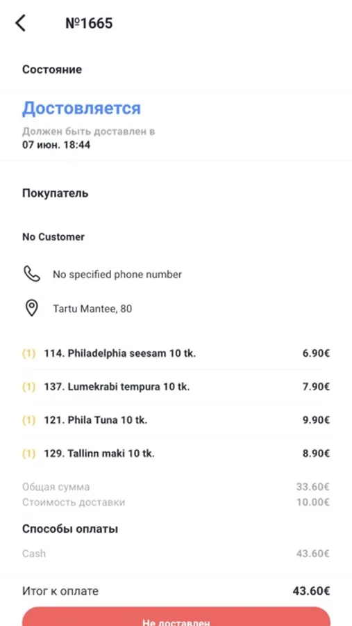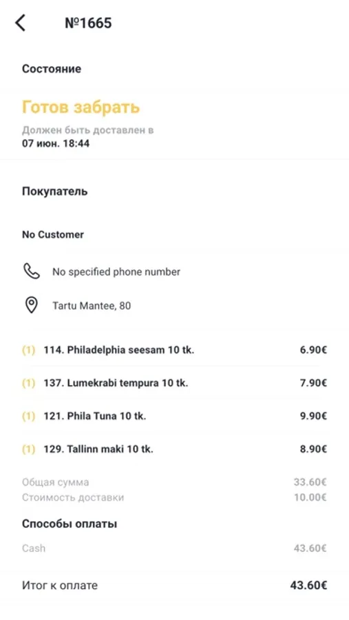 Приложение для курьера, компонент системы полной автоматизации служб производства и доставки еды, кафе, ресторанов и баров JITMeal. Отображает список текущих заказов курьера с возможностью управления их статусами.