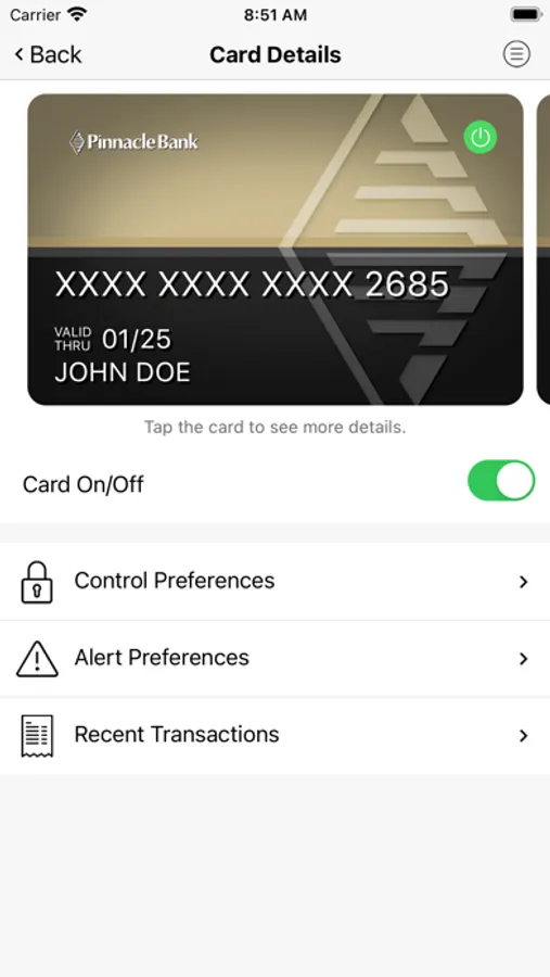 Pinnacle Bank Texas Card Control helps protect your debit and credit cards by sending transaction alerts and giving you the ability to define when, where and how your cards are used. Simply download the app to your smartphone, then customize your alert preferences and usage settings to monitor and manage your cards.