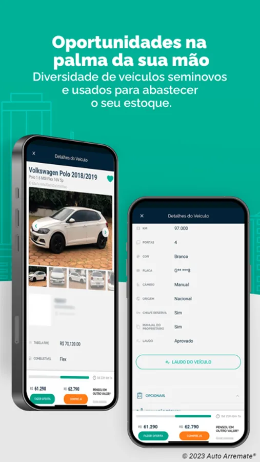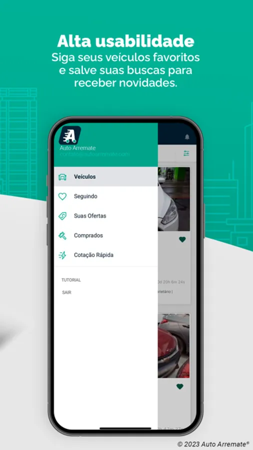 Com o App Auto Arremate Marketplace você acompanha negociações, dá ofertas e fica sabendo caso suas ofertas sejam superadas. Tudo em tempo real na palma da sua mão.