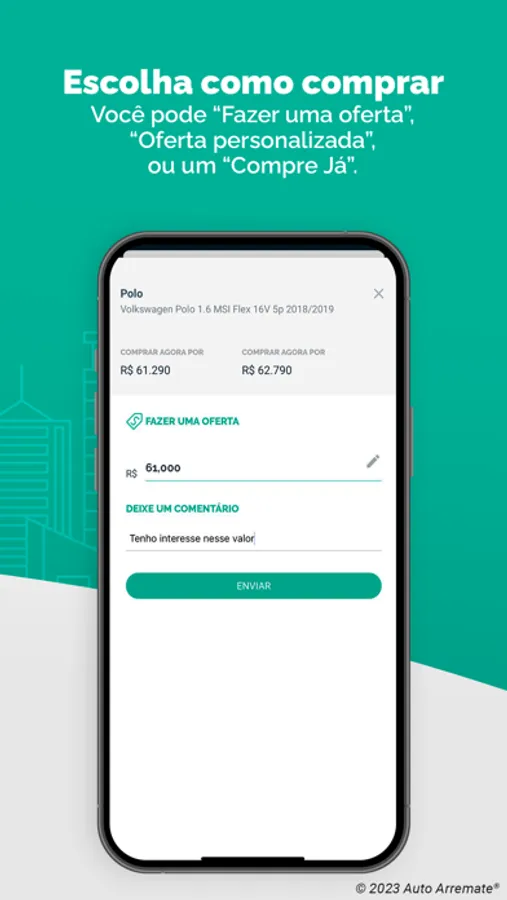 Você pode fazer ofertas, enviar um Compre Já ou sugerir uma proposta personalizada diretamente pelo aplicativo.