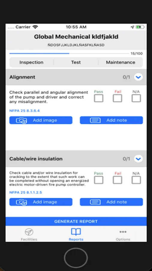 GC-Track Fire Inspection allows our registered costumers to create inspection, tests and maintenance reports according to the recommendations of the NFPA25 standard for pump rooms.