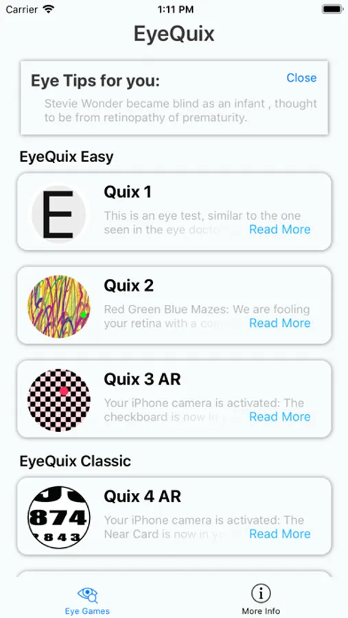 This mobile app idea began in 2014, as a fun education app and "eye training" for all of us, Trainyoureyes101, was launched on the iOS platform in January 2019. Trainyoureyes 101 was selected by Apple Women’s Entrepreneur Camp in Summer 2019 and now, we are Eye Quix, again with the same goals of enhancing eyesight for all: children, adults who do too much computer work, athletes who want to throw a ball faster, seniors and the curious. We have used this in 180 people and over 97% have 1 or more lines improvement. We have used this app with tennis and baseball players.