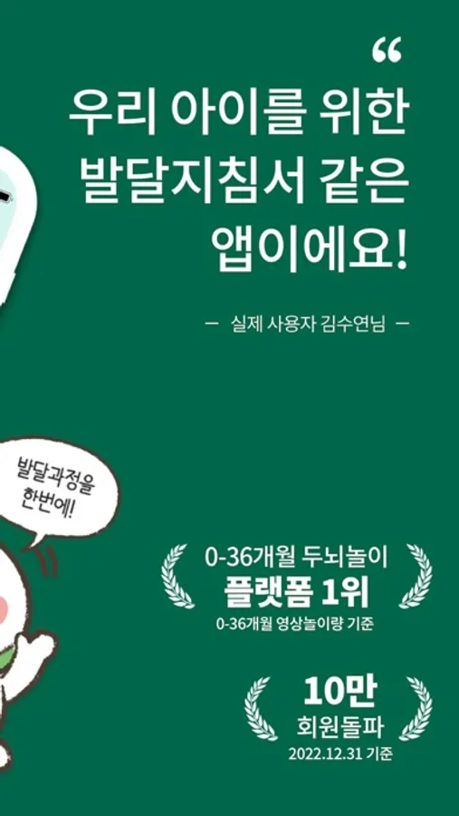 - 아기와 부모의 자람을 연구하는 아동 발달 전문가(발달, 언어, 심리, 행동)들이 직접 만든 앱