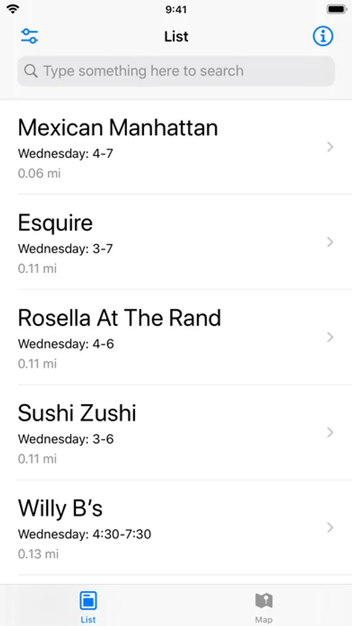 Filter by availability, or search for specific menu items. Looking for somewhere to meet friends tomorrow at 5 o'clock? Trying to find the closest place to score some truffle fries? Either way this app helps you quickly and easily find what you're looking for.