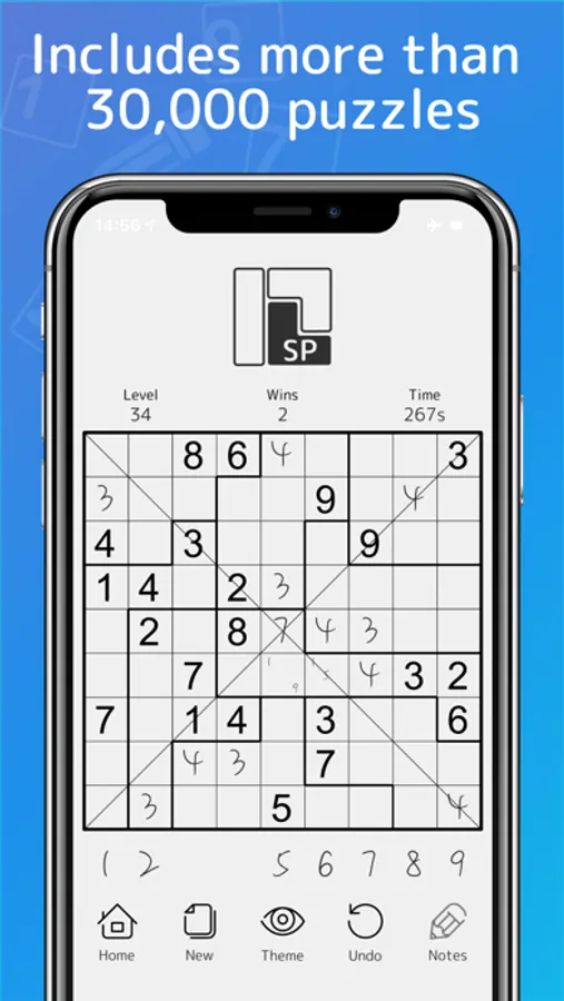 Sudoku(Number Place) is a puzzle game where you fill in a 9x9 grid divided into 3x3 blocks with the numbers 1-9.
