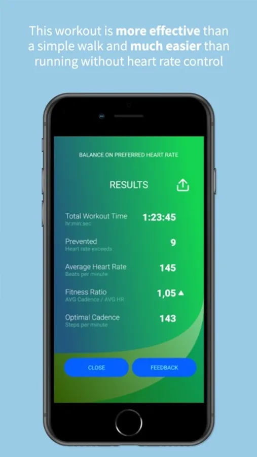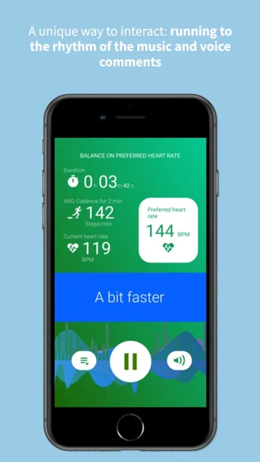 Regular cardio workouts can now be dedicated to good thoughts. And the balance of the heart rate can be trusted to the application. It tracks your heart rate and calculates the optimal rhythm to run in sync with it. It's like a dance, it's the same rhythmic movements to the music, where the music in the headphones is designed specifically for your cardio. And besides, the application notifies by voice about all the nuances. It’s very simple. The heart rate is higher - the rhythm is slower, the heart rate is lower - the rhythm is faster. The application prevents the transition to anaerobic mode (this is when there is not enough oxygen). This means that the state of health during and after training will be positive, even if you do not train often enough. The application adapts to descents and long ascents, calculates the efficiency of the heart muscle and takes this into account right in the process.