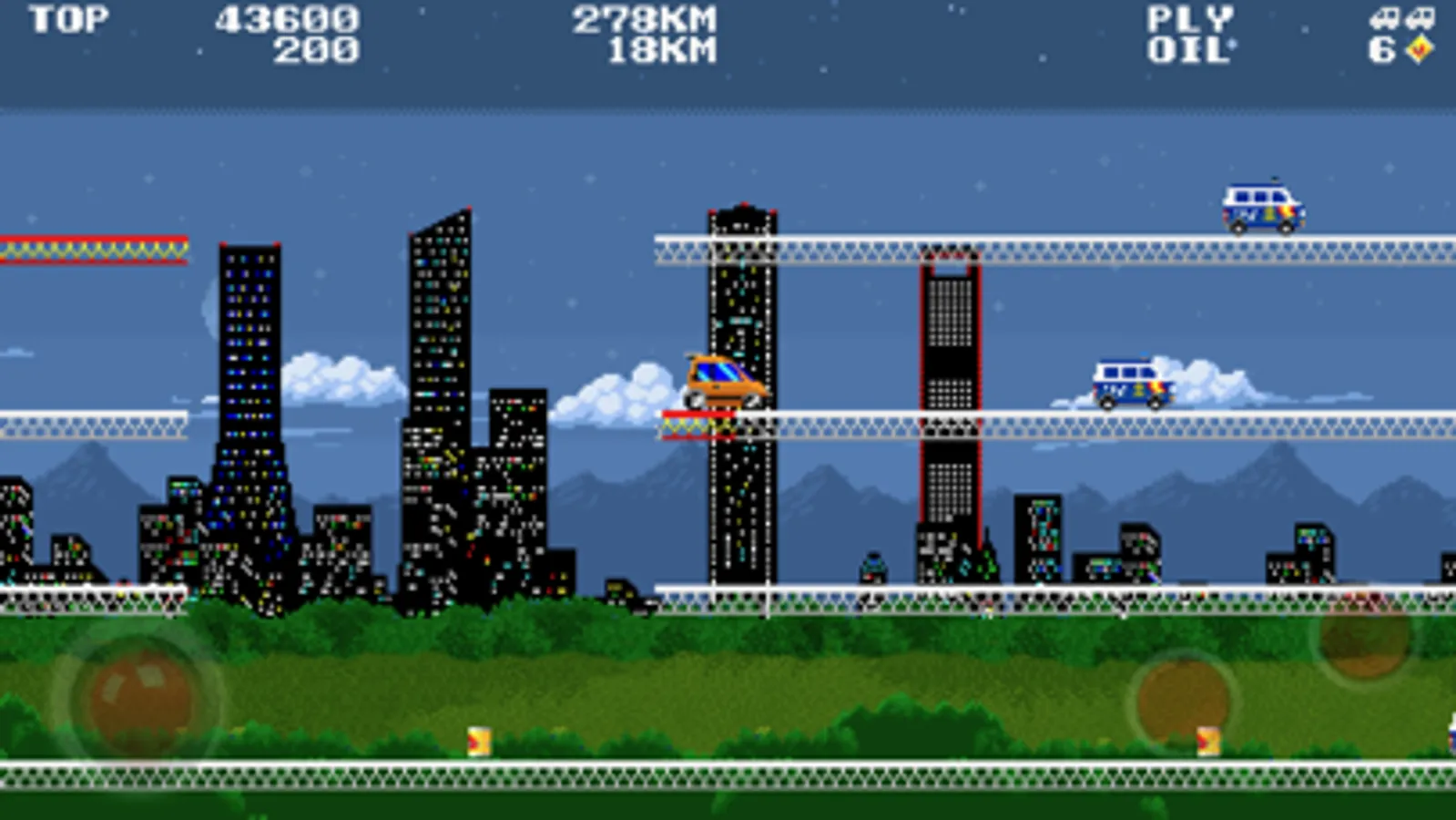 · Screen Controls: Left Joystick, change car direction. Right Buttons, oil shooting and jump (tap short jump, tap and hold large jump).