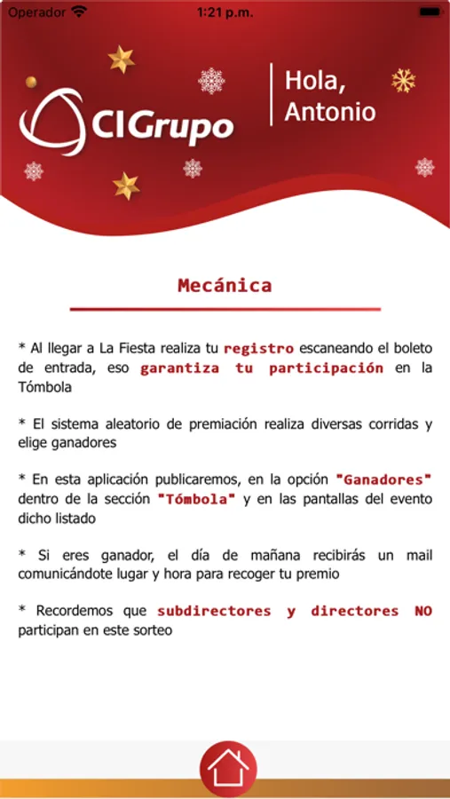 En esta aplicación encontrarás tu Boleto de Entrada, información de Transporte, mecánica de la tómbola, información de ganadores, mensajes, código de vestimenta, ubicación del evento y más.