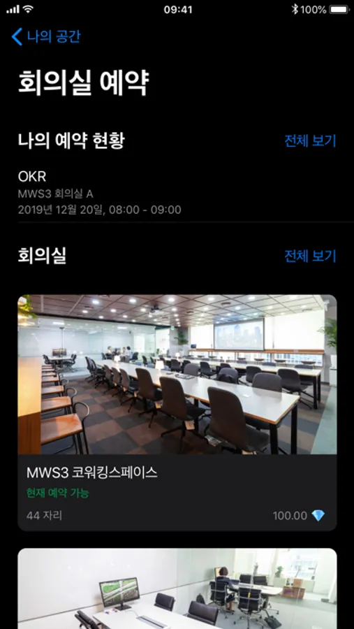 한 번의 터치로 전 지점의 회의실을 예약하고, 취소할 수 있어요.