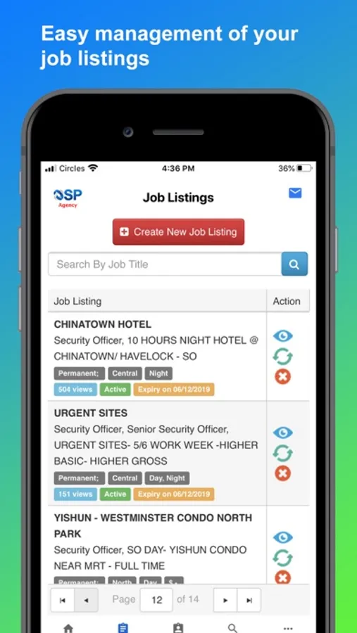 OSP Agency app aims to help the recruitment of officers for Security Agencies in Singapore. OSP will assign accounts for our subscribers(agencies) and they can start posting jobs and searching for officers. We are here to help security agencies to further enhance their search. New agencies can contact us on https://osp.sg to get started.