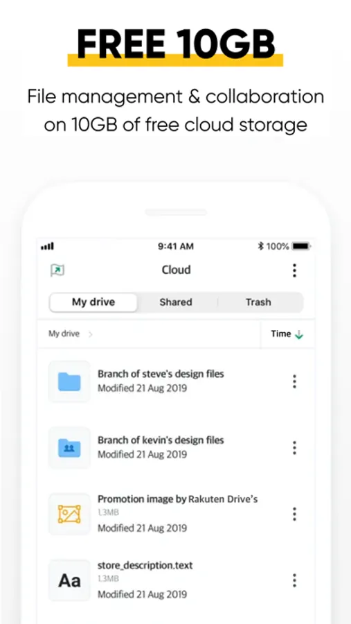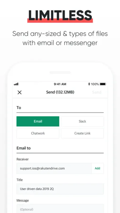 • Cloud service: Save files to the Rakuten Drive Cloud at the same time that you send them as a share-link.(10GB for free)