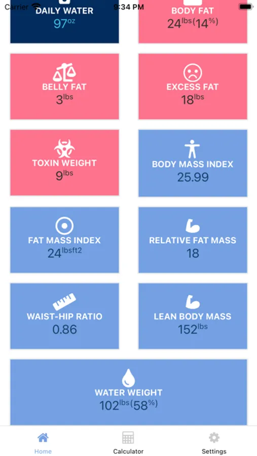 - View over 19 different calculations: