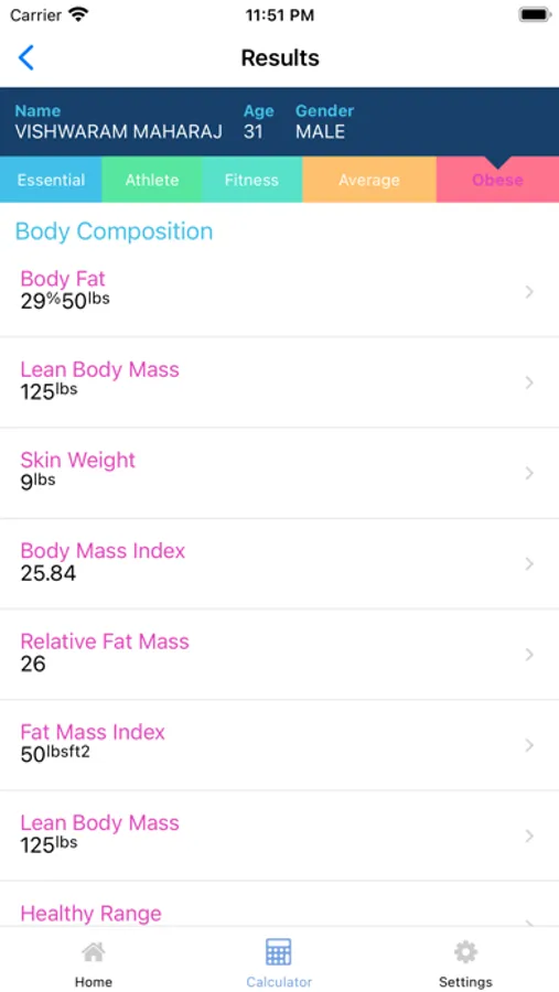 - Body Fat Percentage