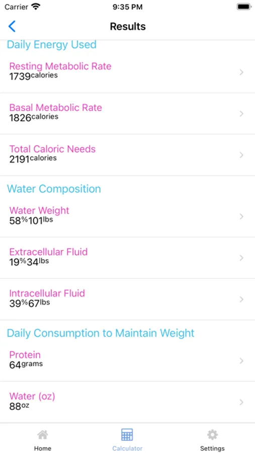 - View how many calories you should eat per day