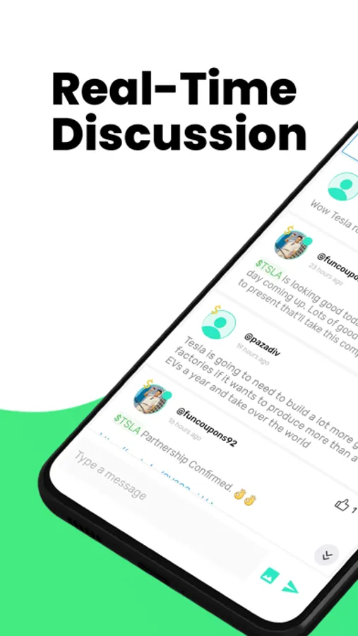 - Real-Time Discussion: Chat with like minded investors across 10,000+ dedicated stock channels