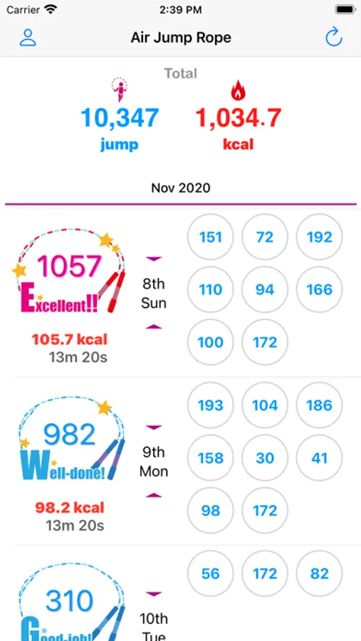 *This app automatically submits your number of times of jumps and calorie result when you finish your exercise.