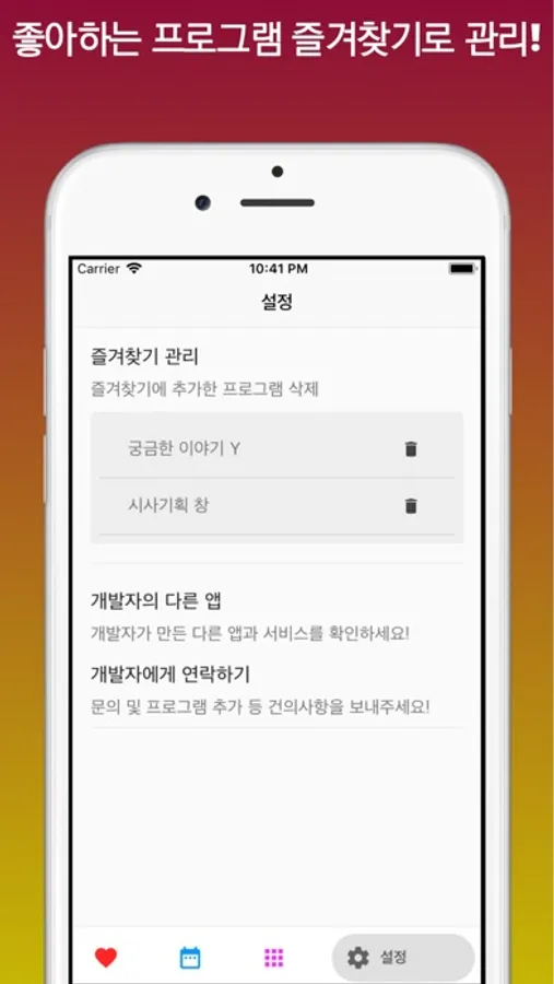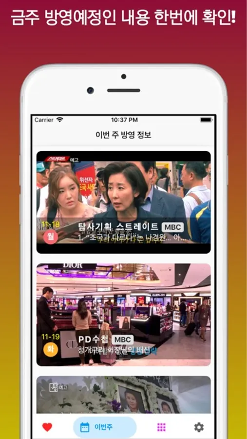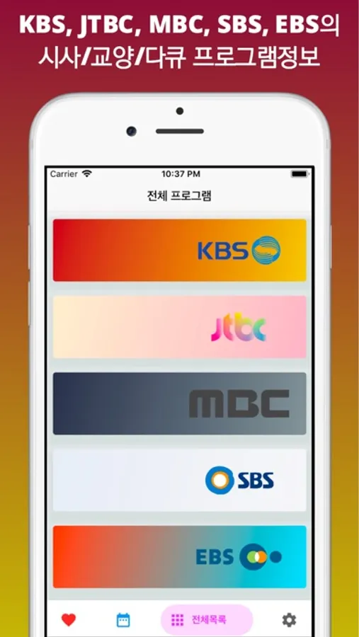 5개 방송사의 32개 시사/교양/다큐 프로그램 방영정보를 앱으로 확인할 수 있으며, 즐겨찾기 기능을 통해 관심있는 방송의 방영정보만 모아볼 수 있습니다!