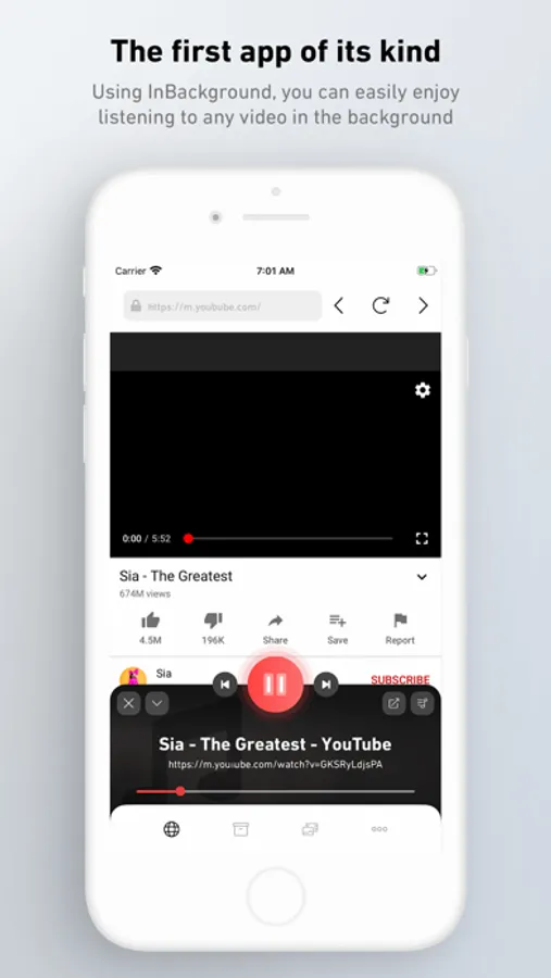 InBackground is the first application of its kind in the AppStore. The application idea is pretty simple: how many times you wished you could play your favorite game while listening to your favorite music? The InBackground app will make your wish come true! The application works on any website playing any video. All that you should do is copying the link of the video and opening the application(or use the app widget); after the video loads, you can now easily navigate to any app and forget about the annoying-abrupt pause of the music video. The application also provides a simple, easy-to-use library section to create and manage different playlists for future use.