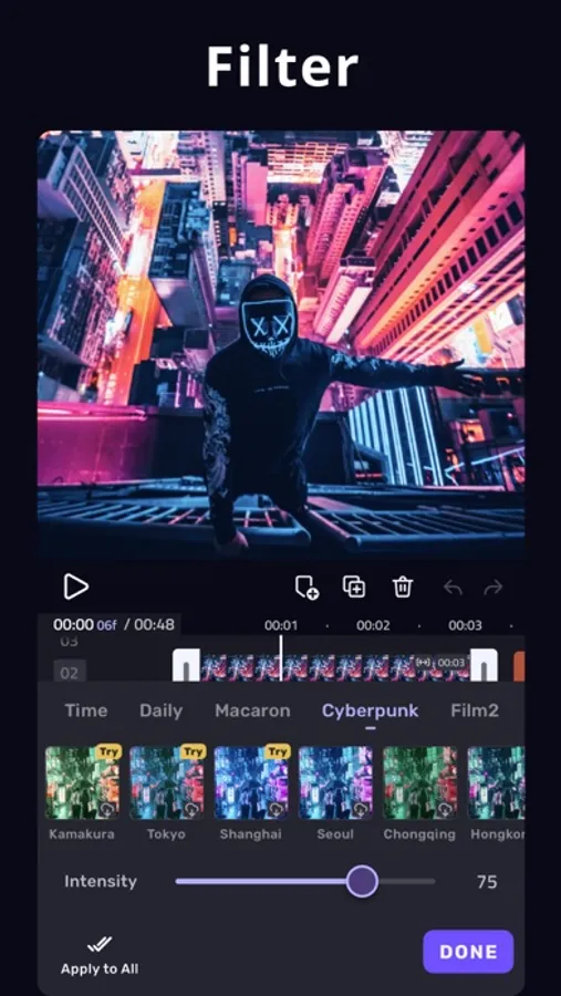 Viva Cut is the best video editor with all features you need! It is a pro video editor with music just for cool transitions, VFX, Glitch effects, cutting, trimming and splitting videos. You may also use its multi-layer timeline to create beautiful video collages for social media.