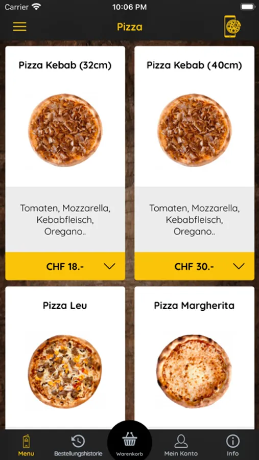 Von den über 29 verschiedenen Pizzen mit traditionellem italienischem Boden, bis hin zu feinem Kebab oder Fischknusperli, können Sie bei uns in der Imbissbude oder bequem bei sich zu Hause geniessen.