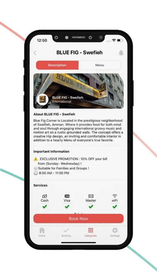 A tarabezah user can benefit from the app by earning promotions when reserving. Each venue that collaborates with the tarabezah app will offer a tarabezah user a certain percentage of promotion on their order.