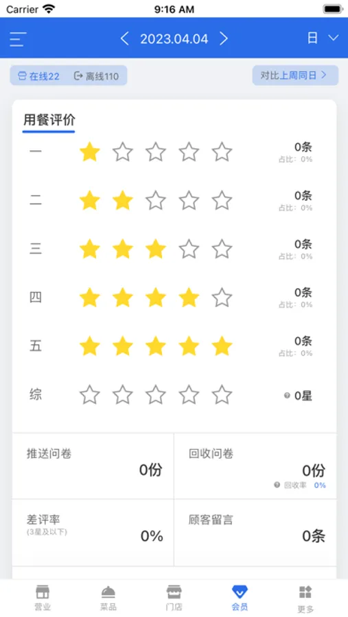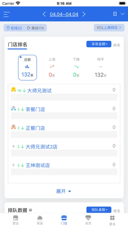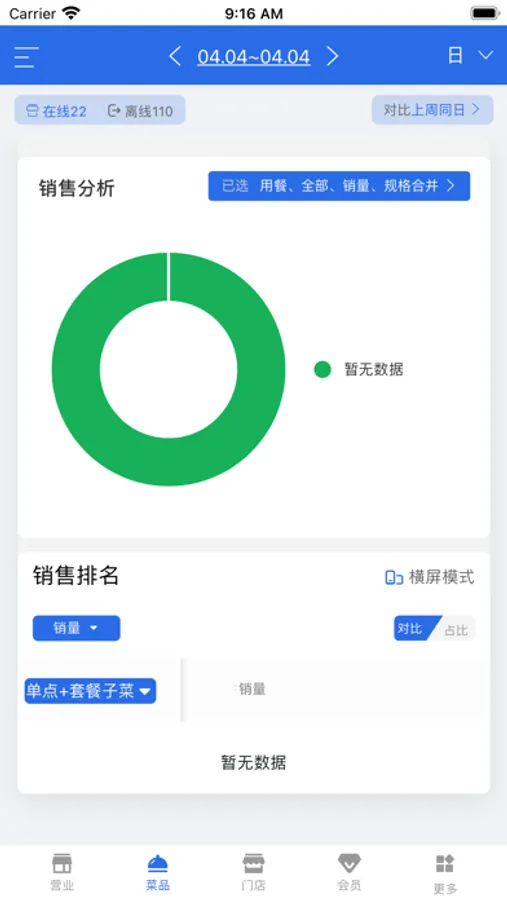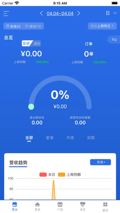 3.可以查看当前的营业情况,外卖情况,达成率等店铺核心数据
