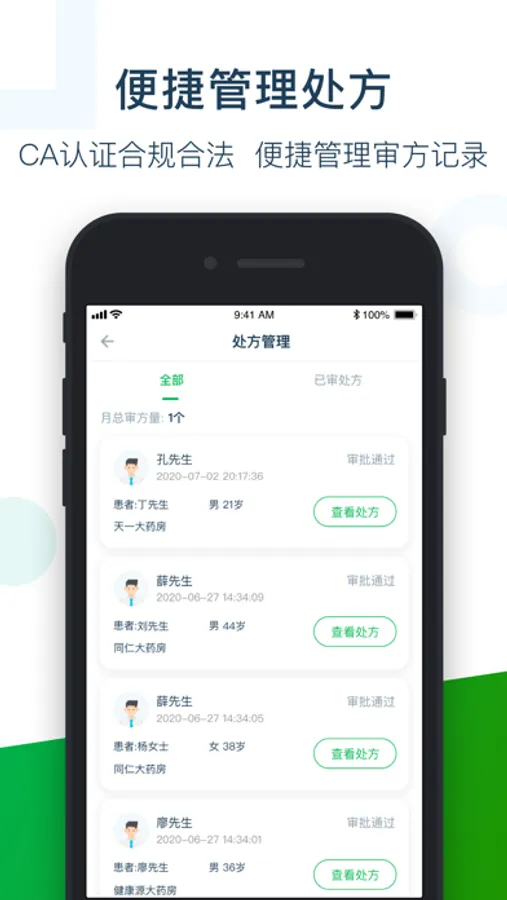 【远程审方】药师线上审方,药师CA认证、指纹打卡和视频审方,多级人员把控,处方用药更安全。