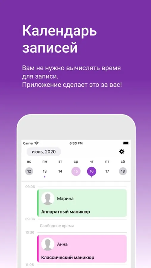Просматривайте записи клиентов и получайте уведомления о записи.