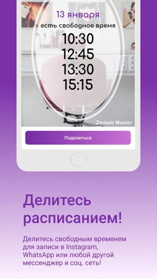 Делитесь свободным временем для записи в Instagram, WhatsApp или любой другой мессенджер и соц. сеть!