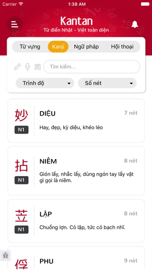 - Hơn 6000 chữ kanjii từ điển Hán - Việt với giải nghĩa theo từ điển Hán Việt.