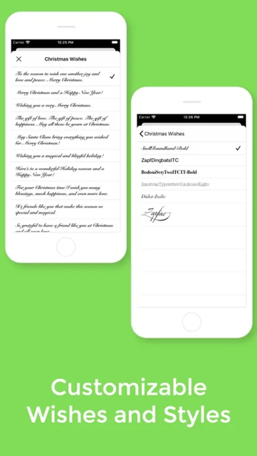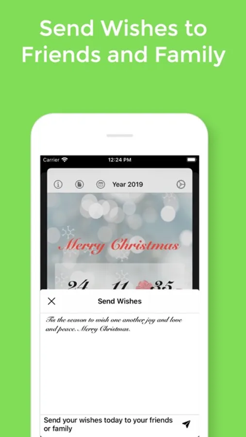 The app offers beautiful screens with customizable Christmas wishes and fonts. You can make your own Christmas card.