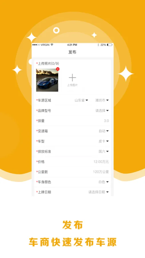 8亿二手车为买卖车辆双方提供车辆登记、求购信息发布、行业趋势信息分享等服务,同时整合二手车交易市场、经纪公司等行业资源,为商家和个人提供准确、及时的交易信息服务。8亿二手车坚持“诚信、公平、专业”的经营原则,管理制度健全,服务功能 完善,可高效便捷办理二手车评估、购销、过户、迁档、置换、银行、按揭等业务真正实现了为有车一族、购车一族和汽车爱好者提供一站式服务。8亿二手车APP由武汉捌亿汽车服务有限公司网络部团队精心打造,整合了8亿二手车网站的优势功能与移动端的特点,拉近买卖双方的距离,为买家提供真实可靠有保障的车源,为卖家提供准确及时的收车渠道及车辆管理,是促成二手车交易的实用工具。