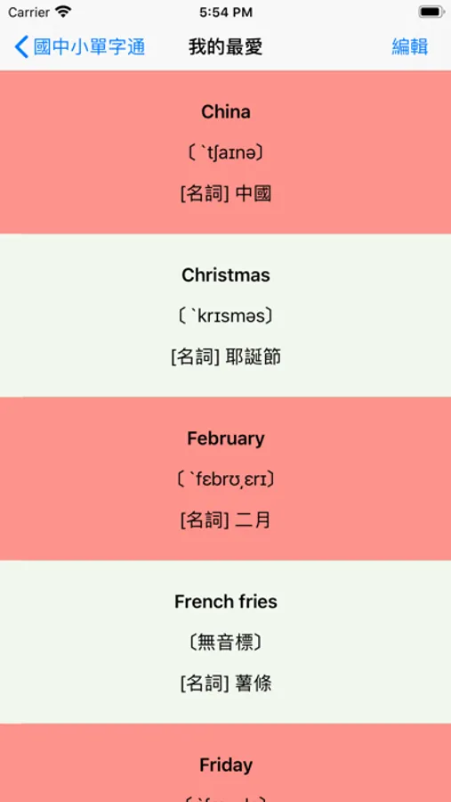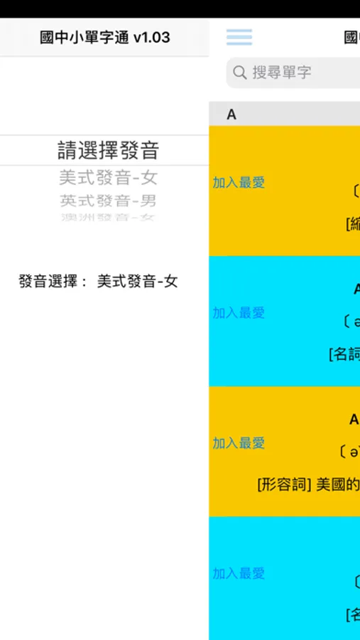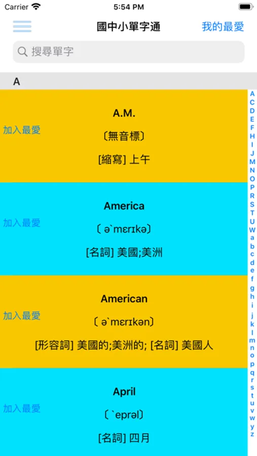 - 我的最愛功能,方便將不熟的單字記錄蒐藏