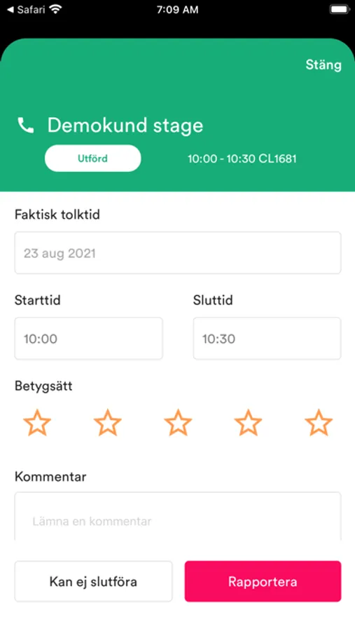 • Rapportera uppdrag