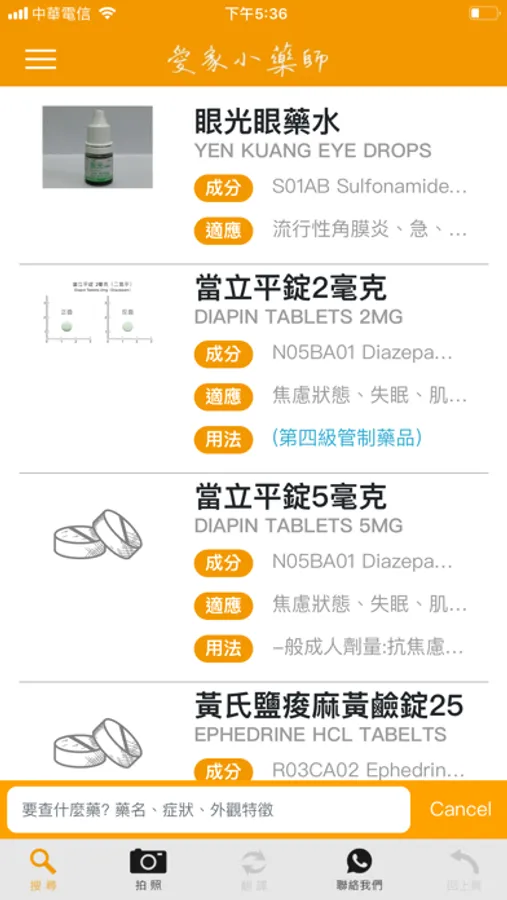 *任意查:可利用中英文、藥名、關鍵字、成分、外型、顏色等任何資訊,迅速找到想查詢的藥物。