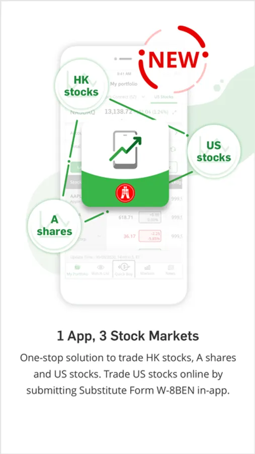 - Provides a one-stop solution to trade HK stocks, A shares and US stocks