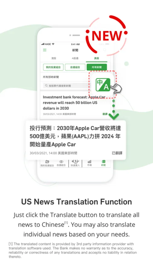 - Display relevant news based on your watch list and portfolio, plus special analysis of Hang Seng Investment Manager and other market experts.