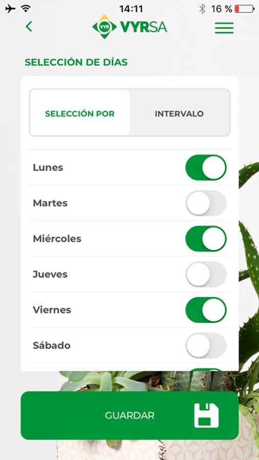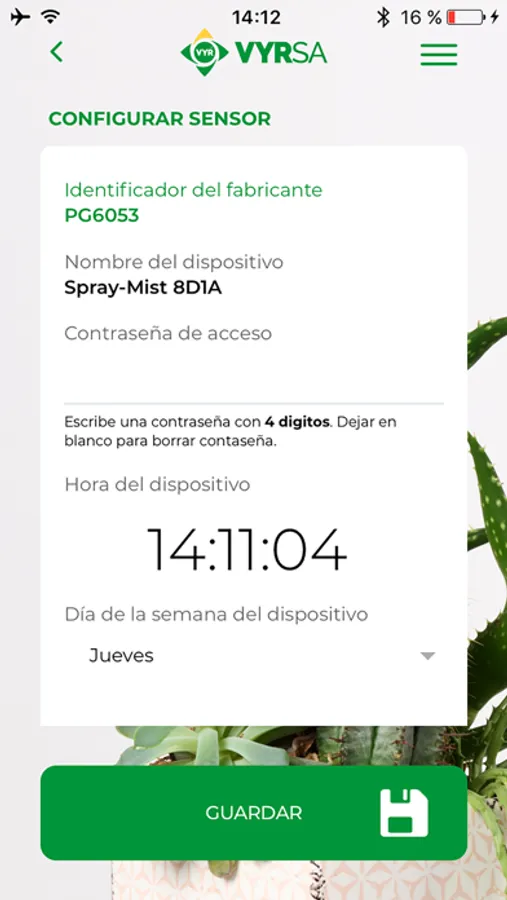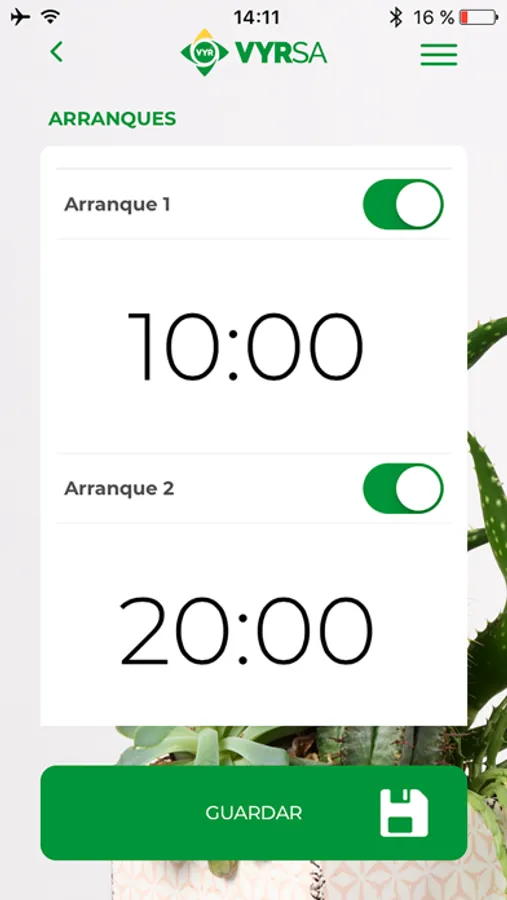 VYR_BT te permite conectarte con tu programador de riego PG 6053 y PG6060 para configurar tu horas de riego de una forma fácil y sencilla en pocos pasos.