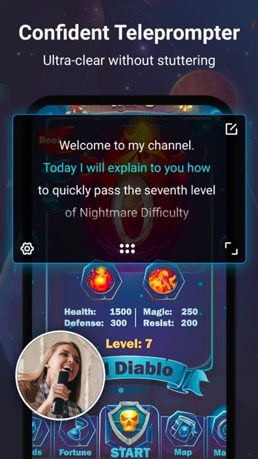 - Suspended teleprompter: Lines are suspended on any application and scrolled to play, with arbitrary adjustment of font size and playback speed. High-definition teleprompter, prompting while shooting, let you never forget the words.