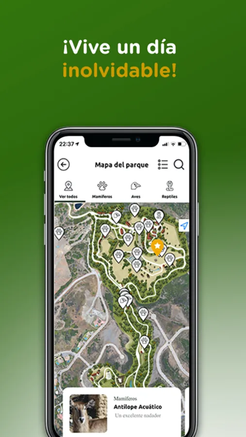 - Descubre todas las especies del parque, aprende impactantes curiosidades del mundo animal y encuéntralas fácilmente con en el mapa del parque geolocalizado.