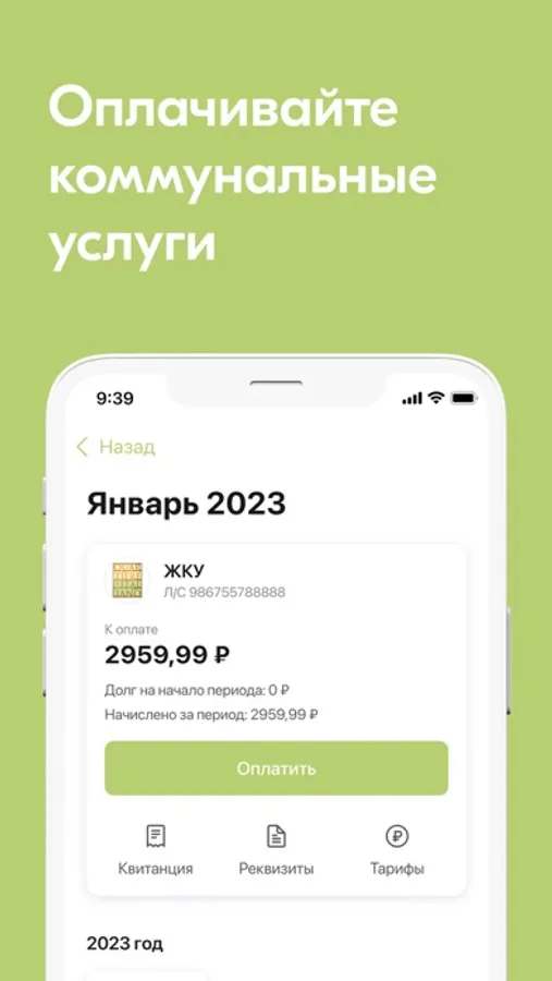 - Просматривать детализированную квитанцию и историю платежей;