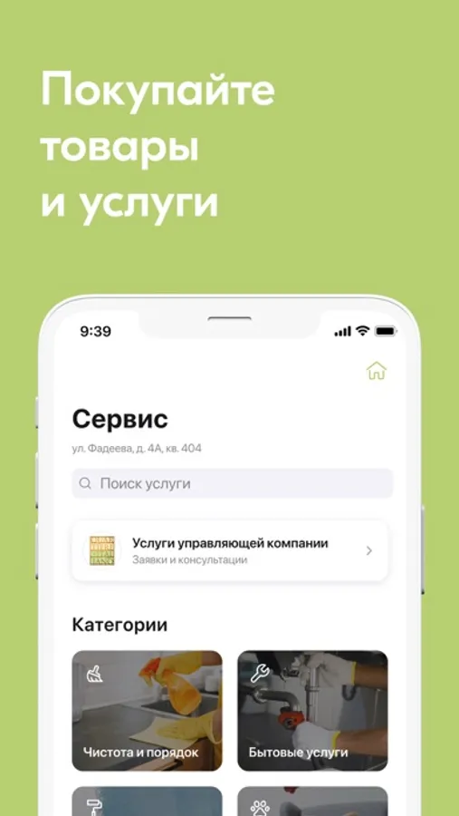 - Заказывать товары и услуги: воду, цветы, ремонт окон и др.