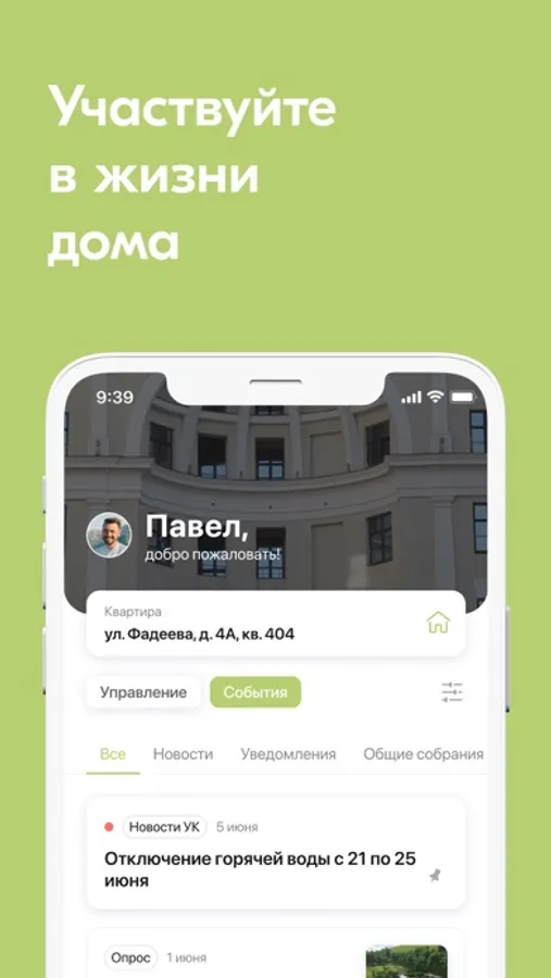 Отправлять заявки, оплачивать счета, принимать участие в опросах и общих собраниях, получать важные уведомления — теперь удобней.