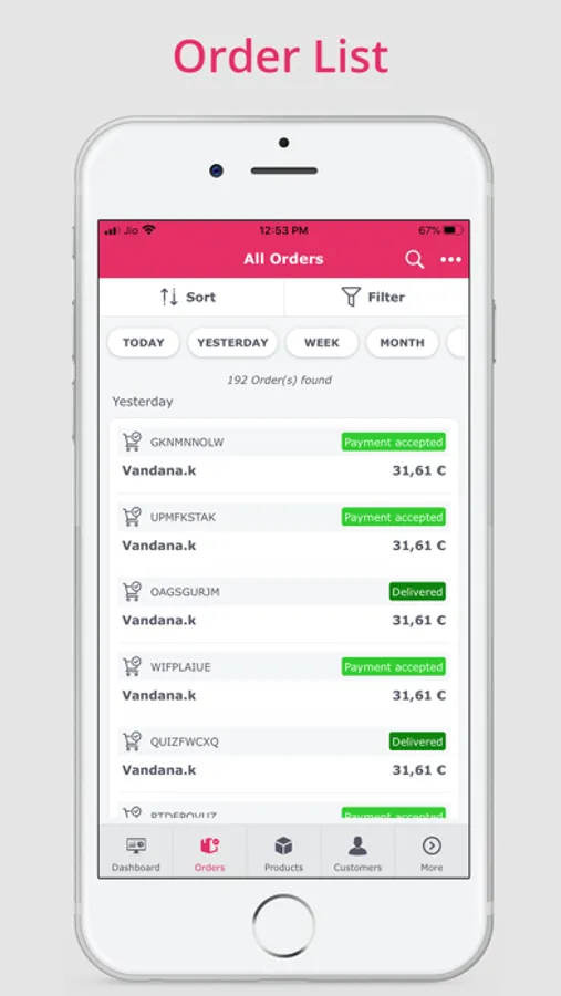 * Date wise Listing (Filter by Today, Yesterday, Week, Month, Year)